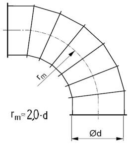 Bends are used to change the direction of the aspiration system. The turning radius of the standard component is equal to the diameter of the bend.