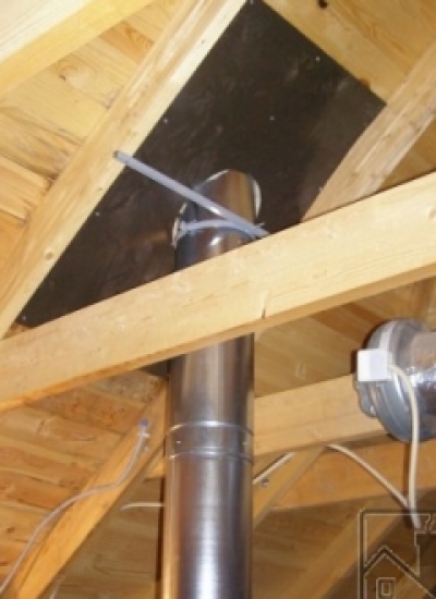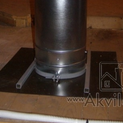 Main Task: To rigidly fix the chimney in the center of the opening between beams or rafters. This prevents the pipe from swaying in the wind and guarantees that the hot chimney will not shift and touch wooden structures, maintaining safe fire clearances.