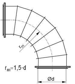 Līkums segmenta R-1,5d 90°, ar flančiem
