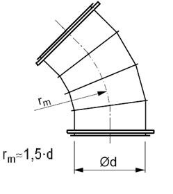 Līkums segmenta R-1,5d 45°, ar flančiem