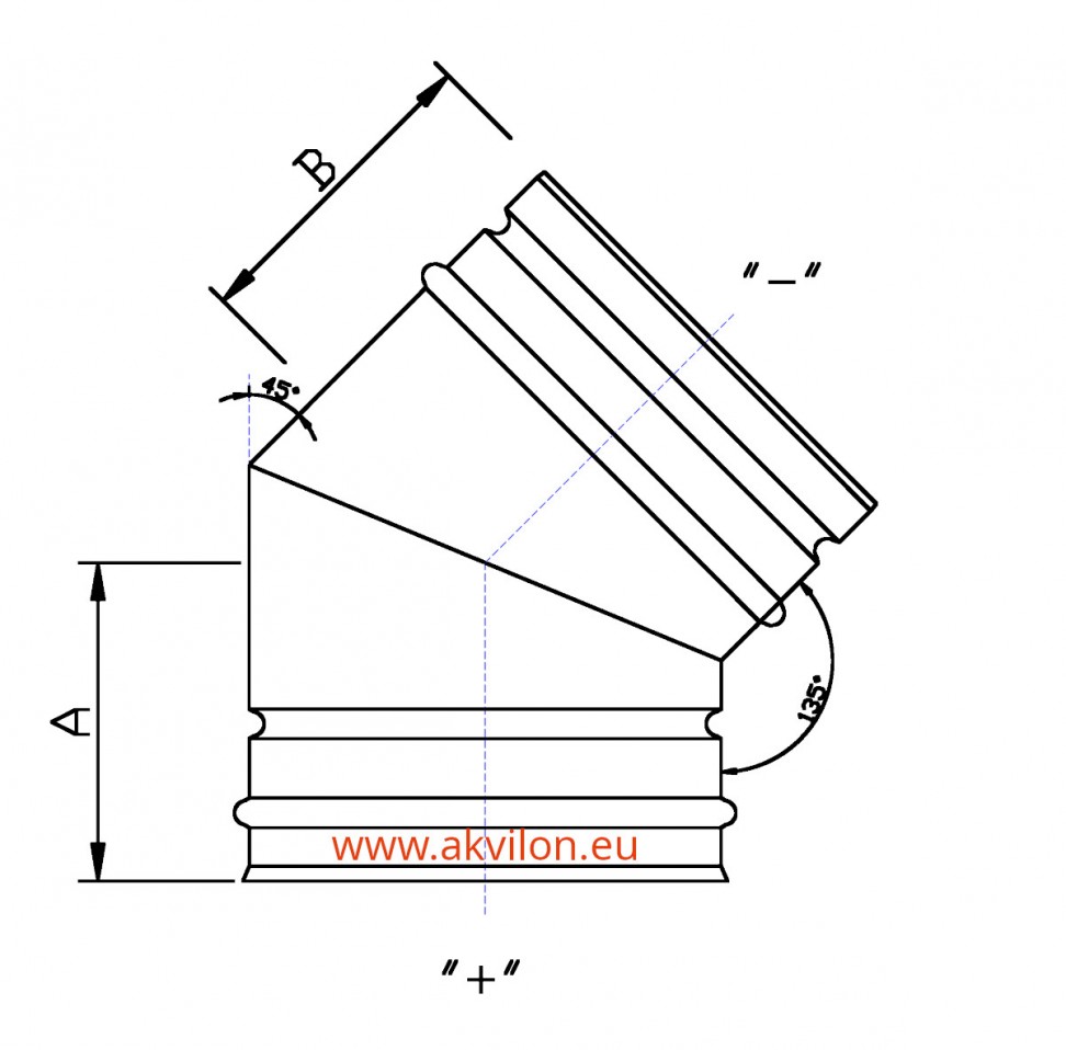 - Ideāla aerodinamika: 45° leņķa izmantošana rada ievērojami mazāku pretestību gāzu plūsmai nekā taisns leņķis. Tas samazina dūmošanas risku un kvēpu nosēšanos pagrieziena vietā.